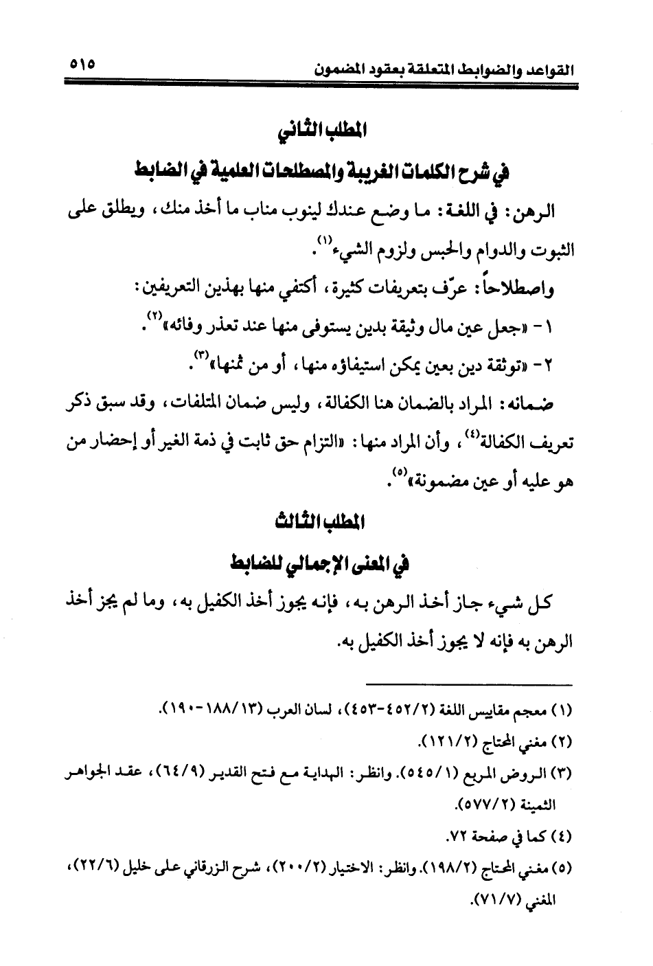 ضمانه: المراد بالضمان هنا الكفالة، وليس ضمان المتلفات، وقد سبق ذكر تعريف الكفالة (¬٤)، وأن المراد منها: «التزام حق ثابت في ذمة الغير أو إحضار من هو عليه أو عين مضمونة» (¬٥).