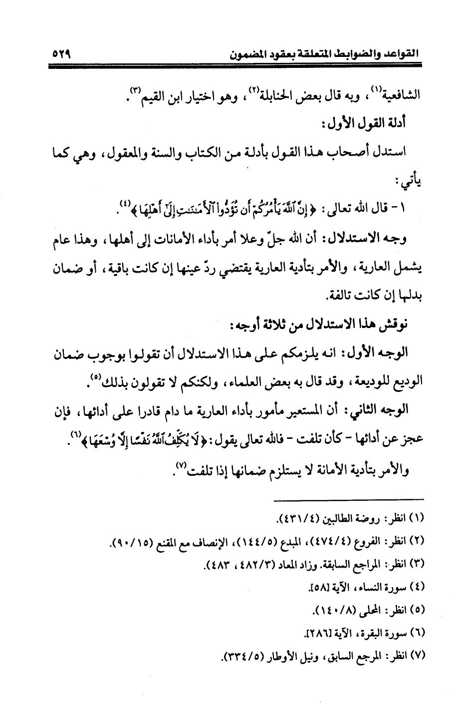 ١ - قال الله تعالى: {إِنَّ اللَّهَ يَأْمُرُكُمْ أَنْ تُؤَدُّوا الْأَمَانَاتِ إِلَى أَهْلِهَا} (¬٤).