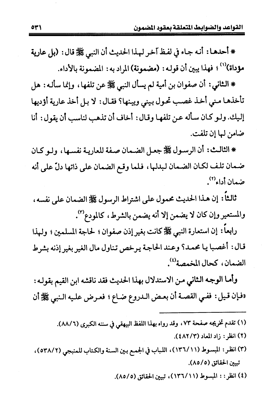 ثالثاً: إن هذا الحديث محمول على اشتراط الرسول - صلى الله عليه وسلم - الضمان على نفسه، والمستعير وإن كان لا يضمن إلا أنه يضمن بالشرط، كالمودع (¬٣).