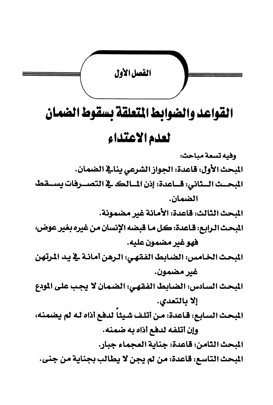 الفصل الأول: القواعد والضوابط المتعلقة بسقوط الضمان لعدم