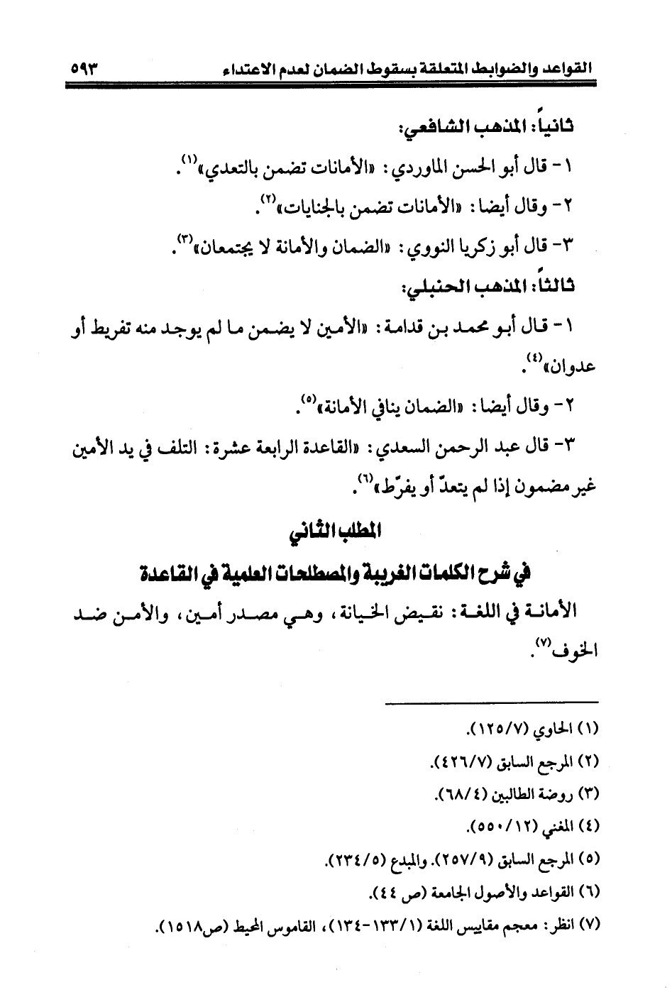 ٣ - قال عبد الرحمن السعدي: «القاعدة الرابعة عشرة: التلف في يد الأمين غير مضمون إذا لم يتعدّ أو يفرّط» (¬٦).