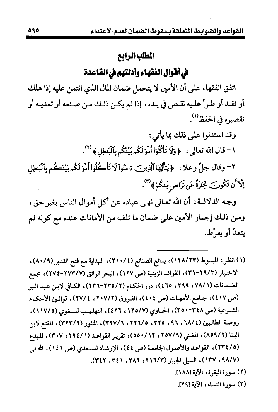 (¬١) انظر: المبسوط (٢٣/ ١٢٨)، بدائع الصنائع (٤/ ٢١٠)، الهداية مع فتح القدير (٩/ ٨٠)، الاختيار (٣/ ٢٩ - ٣١)، الفوائد الزينية (ص ١٢٧)، البحر الرائق (٧/ ٢٧٣ - ٢٧٤)، مجمع الضمانات (١/ ٧٨، ٣٩٩، ٤٦٥)، درر الحكام (٢/ ٢٣٥ - ٢٣٦)، الكافي لابن عبد البر (ص ٤٠٧)، جامع الأمهات (ص ٤٠٤)، الفروق (٢/ ٢٠٧، ٤/ ٢٧)، قوانين الأحكام الشرعية (ص ٣٤٨ - ٣٥٠)، الحاوي (٧/ ١٢٥، ٤٢٦)، التهذيب للبغوي (٥/ ١١٧)، روضة الطالبين (٤/ ٦٨، ٩٦، ٣٢٥، ٥/ ٢٢٦، ٦/ ٣٢٧)، المنثور (٢/ ٣٢٣)، المقنع لابن البنا (٢/ ٨٥٩)، المغني (٩/ ٢٥٧، ١٢/ ٥٥٠)، تقرير القواعد (١/ ٢٩٤، ٣٠٧)، المبدع (٥/ ٢٣٤)، القواعد والأصول الجامعة (ص ٤٤)، الإرشاد للسعدي (ص ١٤١)، المحلى (٧/ ٩٨، ١٣٧)، السيل الجرار (٣/ ٢١٦، ٢٨٦، ٣٤١، ٣٤٢).