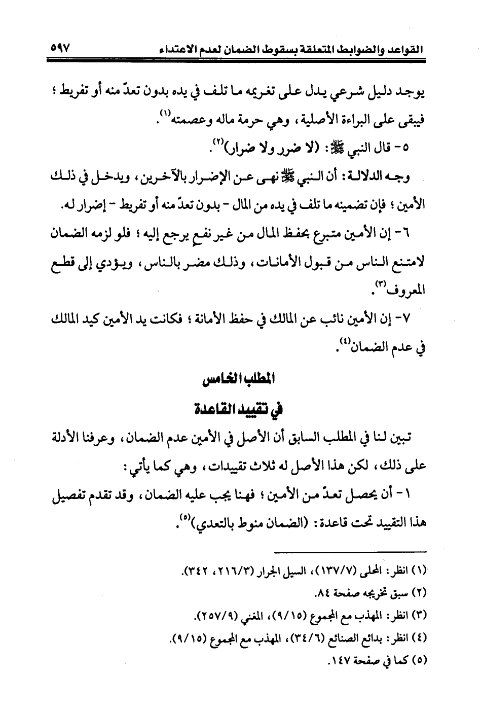 ١ - أن يحصل تعدّ من الأمين؛ فهنا يجب عليه الضمان، وقد تقدم تفصيل هذا التقييد تحت قاعدة: (الضمان منوط بالتعدي) (¬٥).