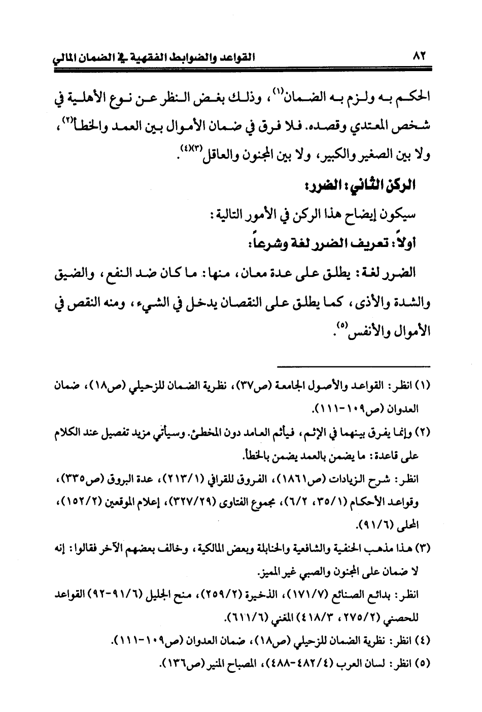 (¬١) انظر: القواعد والأصول الجامعة (ص ٣٧)، نظرية الضمان للزحيلي (ص ١٨)، ضمان العدوان (ص ١٠٩ - ١١١).
