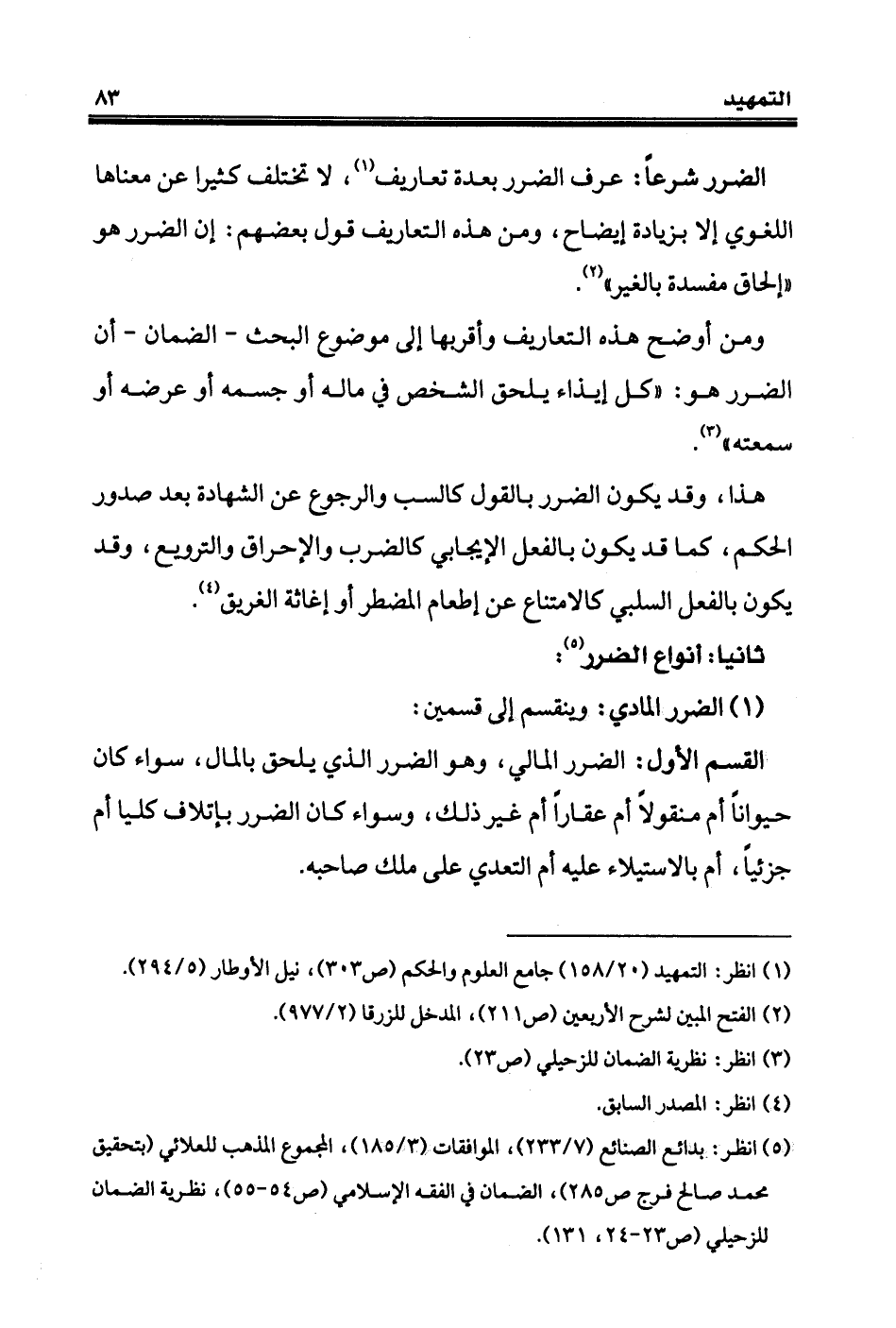 (¬٥) انظر: بدائع الصنائع (٧/ ٢٣٣)، الموافقات (٣/ ١٨٥)، المجموع المذهب للعلائي (بتحقيق محمد صالح فرج ص ٢٨٥)، الضمان في الفقه الإسلامي (ص ٥٤ - ٥٥)، نظرية الضمان للزحيلي (ص ٢٣ - ٢٤، ١٣١).