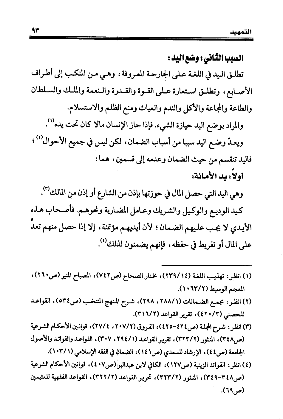 (¬٣) انظر: شرح المجلة (ص ٤٢٤ - ٤٢٥)، الفروق (٢/ ٢٠٧، ٤/ ٢٧)، قوانين الأحكام الشرعية (ص ٣٤٨)، المنثور (٢/ ٣٢٣)، تقرير القواعد (١/ ٢٩٤، ٣٠٧)، القواعد والفوائد والأصول الجامعة (ص ٤٤)، الإرشاد للسعدي (ص ١٤١)، الضمان في الفقه الإسلامي (١/ ١٠٣).