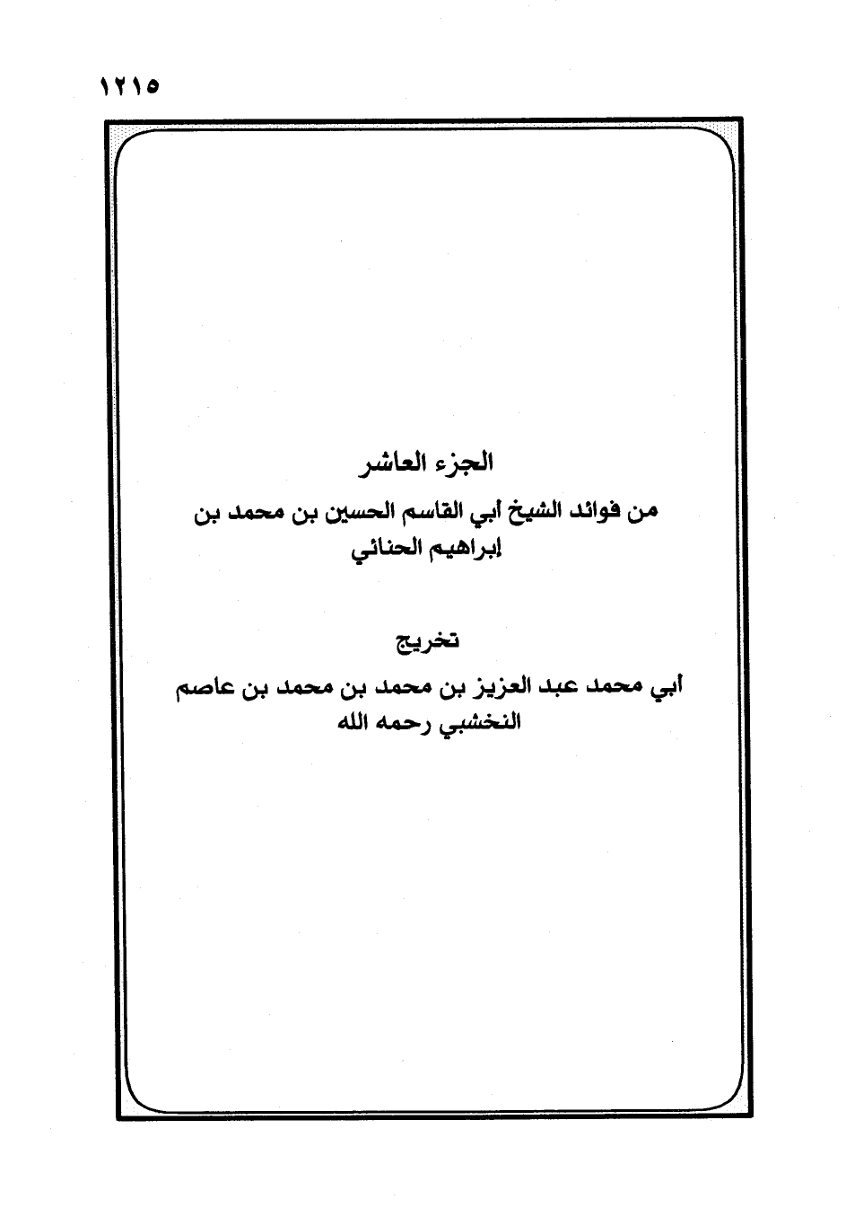 تَخْرِيجُ أَبِي مُحَمَّدٍ عَبْدِ الْعَزِيزِ بْنِ مُحَمَّدِ بْنِ مُحَمَّدِ بْنِ عَاصِمٍ النَّخْشَبِيِّ رَحِمَهُ اللَّهُ