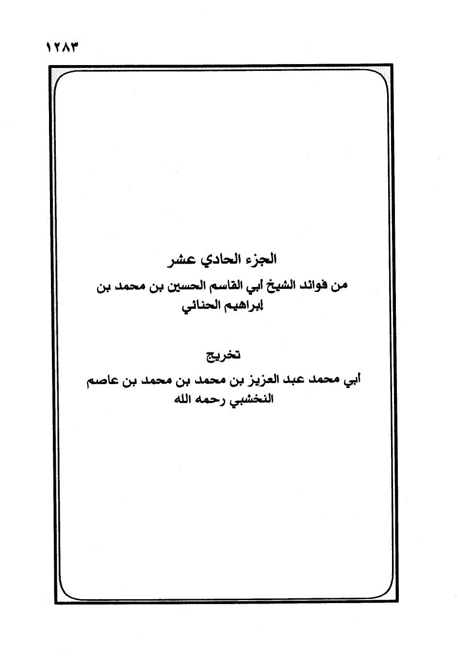 تَخْرِيجُ أَبِي مُحَمَّدٍ عَبْدِ الْعَزِيزِ بْنِ مُحَمَّدِ بْنِ مُحَمَّدِ بْنِ عَاصِمٍ النَّخْشَبِيِّ رَحِمَهُ اللَّهُ