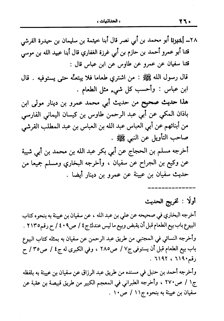 هَذَا حَدِيثٌ صَحِيحٌ مِنْ حَدِيثِ أَبِي مُحَمَّدٍ عَمْرِو بْنِ دِينَارٍ مَوْلَى ابْنِ بَاذَانَ الْمَكِّيِّ عَنْ أَبِي عَبْدِ الرَّحْمَنِ طَاوُسِ بْنِ كَيْسَانَ الْيَمَانِيِّ الْفَارِسِيِّ مِنْ أَبْنَائِهِمْ عَنْ أَبِي الْعَبَّاسِ عَبْدِ اللَّهِ بْنِ الْعَبَّاسِ بْنِ عَبْدِ الْمُطَّلِبِ الْقُرَشِيِّ صَاحِبِ التَّأْوِيلِ عَنِ النَّبِيِّ صَلَّى اللَّهُ عَلَيْهِ وَسَلَّمَ.