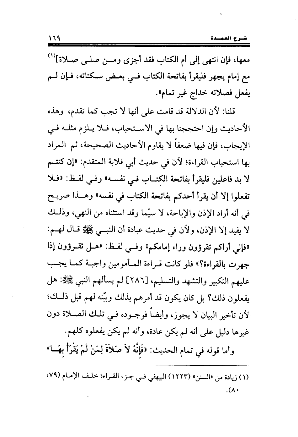 وأما قوله في تمام الحديث: «فَإِنَّهُ لاَ صَلاَةَ لِمَنْ لَمْ يَقْرَأْ بِهَا».
