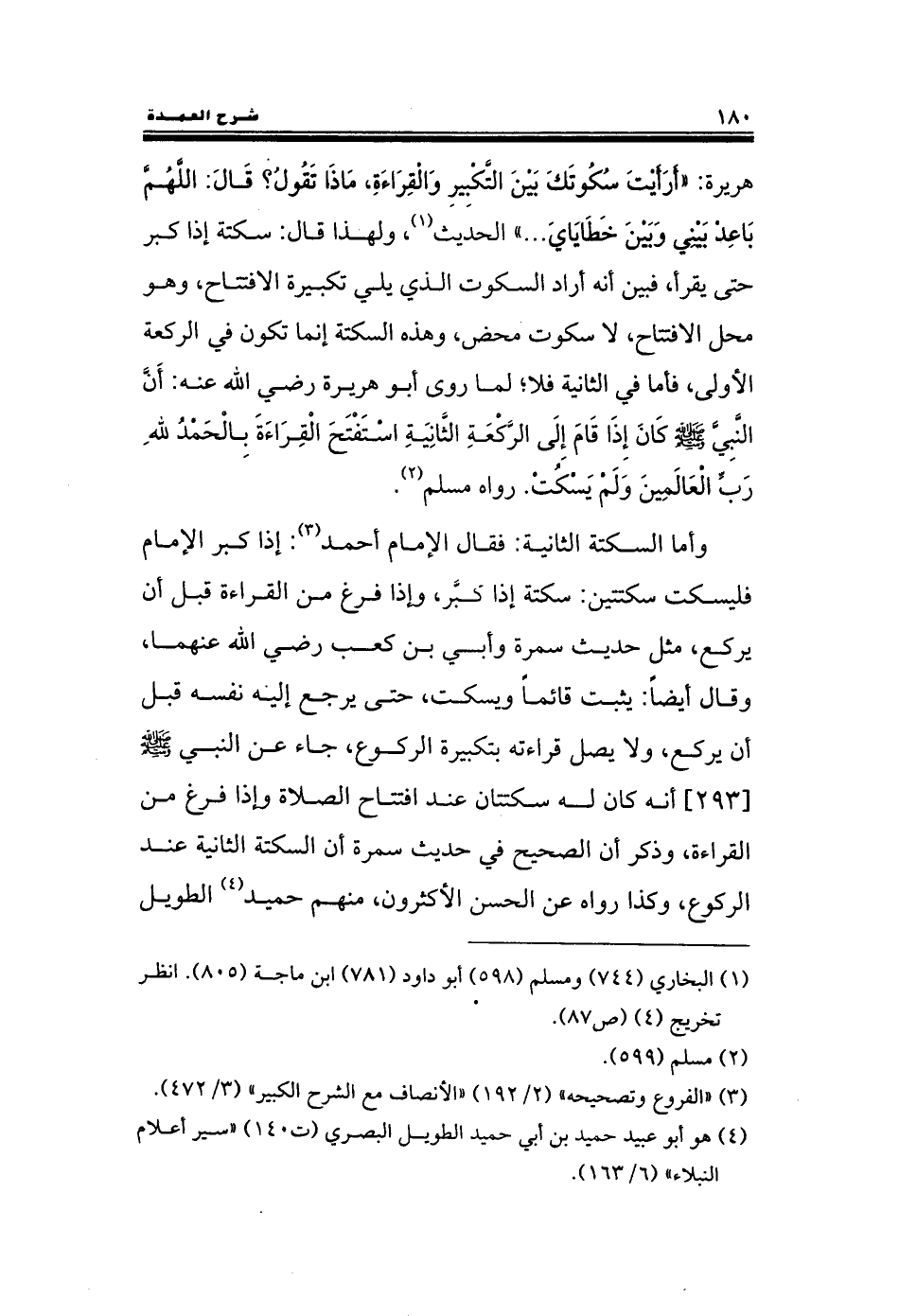 هريرة: «أَرَأَيْتَ سُكُوتَكَ بَيْنَ التَّكْبِيرِ وَالْقِرَاءَةِ, مَاذَا تَقُولُ؟ قَالَ: اللَّهُمَّ بَاعِدْ بَيْنِي وبَيْنَ خَطَايَايَ ...» الحديث, ولهذا قال: سكتة إذا كبر حتى يقرأ, فبين أنه أراد السكوت الذي يلي تكبيرة الافتتاح, وهو محل الافتتاح, لا سكوت محض, وهذه السكتة إنما تكون في الركعة الأولى, فأما في الثانية فلا؛ لما روى أبو هريرة رضي الله عنه: أّنَّ النَّبِيَّ صلى الله عليه وسلم كَانَ إِذَا قَامَ إِلَى الرَّكْعَةِ الثَّانِيَةِ اسْتَفْتَحَ الْقِرَاءَةَ بِالْحَمْدُ للهِ رَبِّ الْعَالَمِينَ وَلَمْ يَسْكُتْ. رواه مسلم.