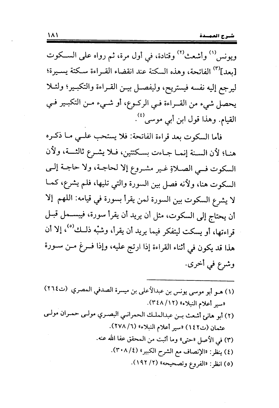 ويونس وأشعث وقتادة, في أول مرة, ثم رواه على السكوت [بعد] الفاتحة, وهذه السكتة عند انقضاء القراءة سكتة يسيرة؛ ليرجع إليه نفسه فيستريح, وليفصل بين القراءة والتكبير؛ ولئلا يحصل شيء من القراءة في الركوع, أو شيء من التكبير في القيام. وهذا قول ابن أبي موسى.