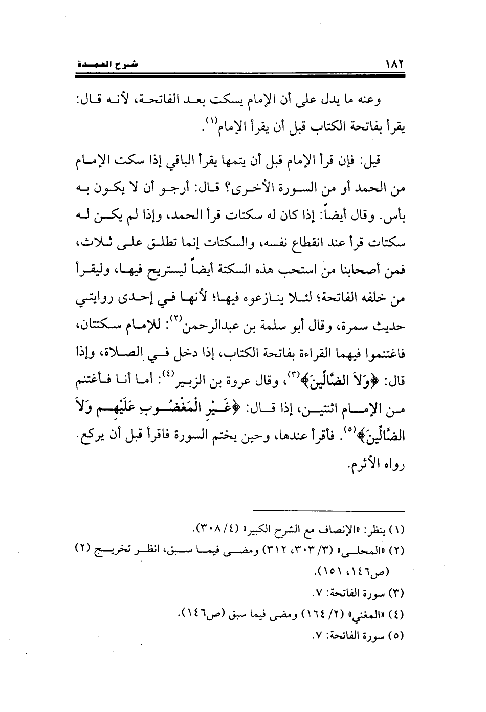 وعنه ما يدل على أن الإمام يسكت بعد الفاتحة, لأنه قال: يقرأ بفاتحة الكتاب قبل أن يقرأ الإمام.