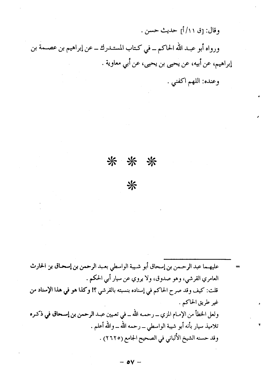 وَرَوَاهُ أَبُو عَبْدِ اللَّهِ الْحَاكِمُ فِي كِتَابِ الْمُسْتَدْرَكِ عَنْ إِبْرَاهِيمَ بْنِ عِصْمَةَ بْنِ إِبْرَاهِيمَ عَنْ أَبِيهِ، عَنْ يَحْيَى بْنِ يَحْيَى، عَنْ أَبِي مُعَاوِيَةَ.