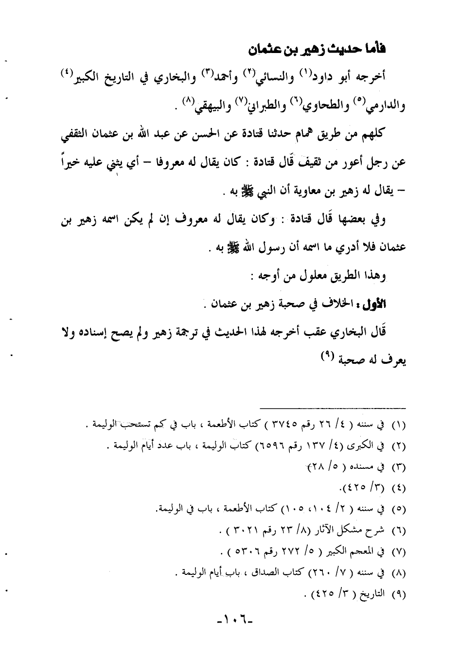 الأول: الخلاف في صحبة زهير بن عثمان.