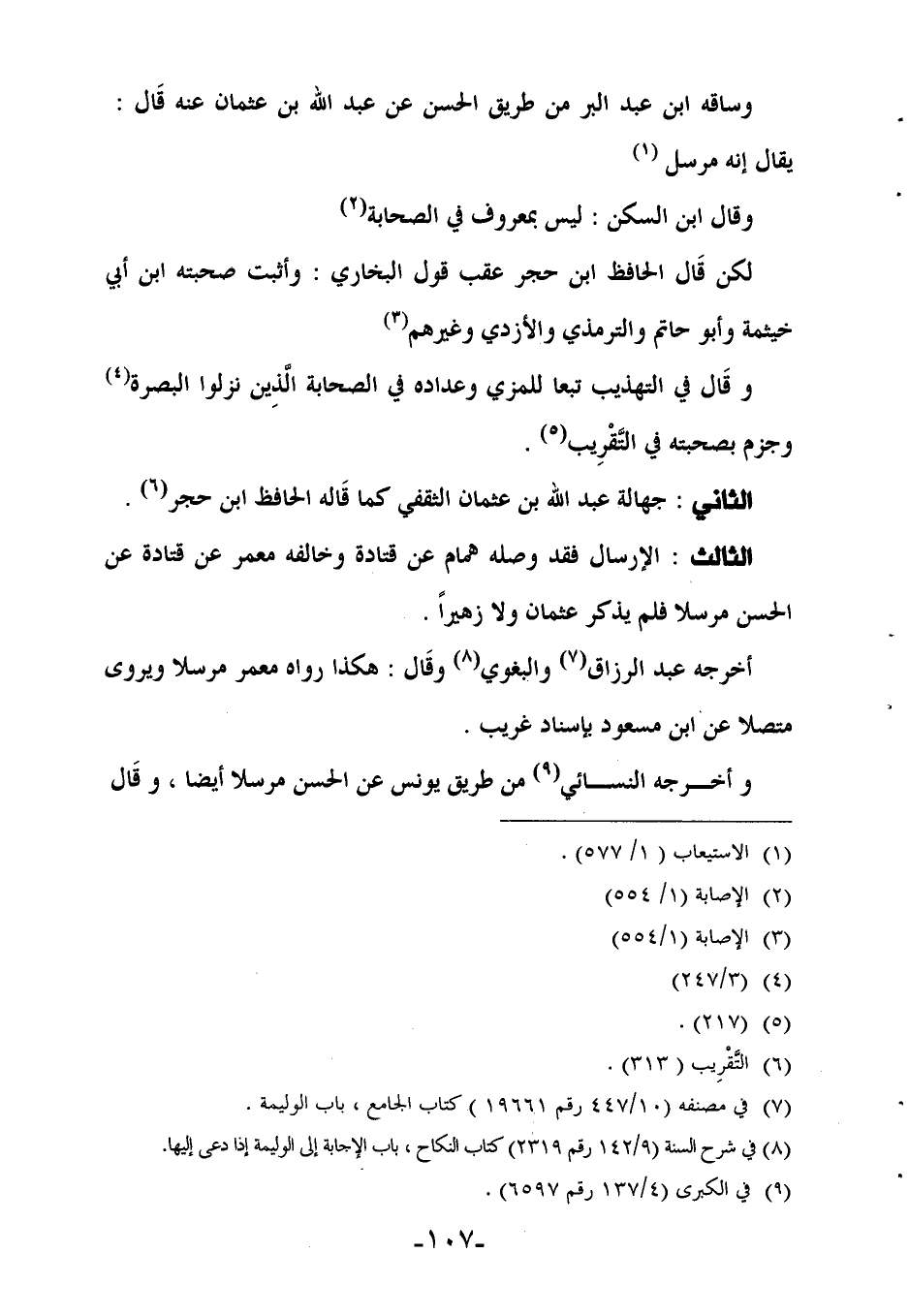 الثاني: جهالة عبد الله بن عثمان الثقفي كما قاله الحافظ ابن حجر (¬6).