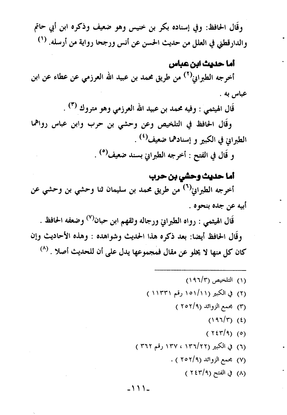 وقال الحافظ في التلخيص وعن وحشي بن حرب وابن عباس رواهما الطبراني في الكبير وإسنادهما ضعيف (¬4).