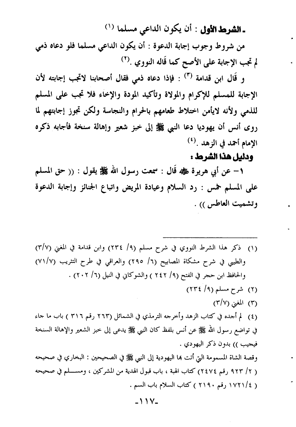 (¬1) ذكر هذا الشرط النووي في شرح مسلم (9/ 234) وابن قدامة في المغني (7/ 3) والطيبي في شرح مشكاة المصابيح (6/ 295) والعراقي في طرح التثريب (7/ 71) والحافظ ابن حجر في الفتح (9/ 242) والشوكاني في النيل (6/ 202).