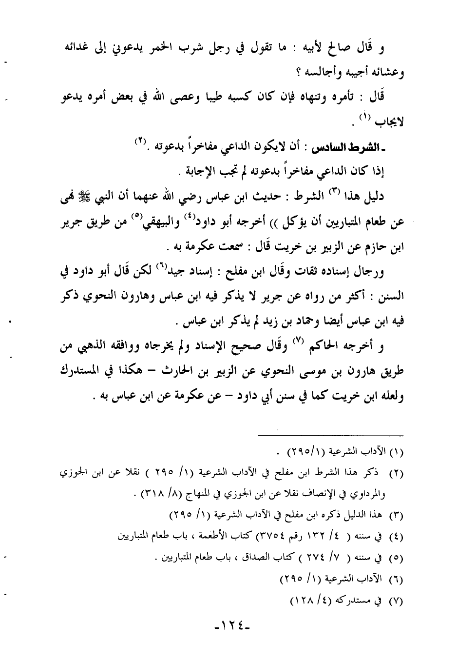 (¬2) ذكر هذا الشرط ابن مفلح في الآداب الشرعية (1/ 295) نقلاً عن ابن الجوزي والمرداوي في الإنصاف نقلاً عن ابن الجوزي في المنهاج (8/ 318).