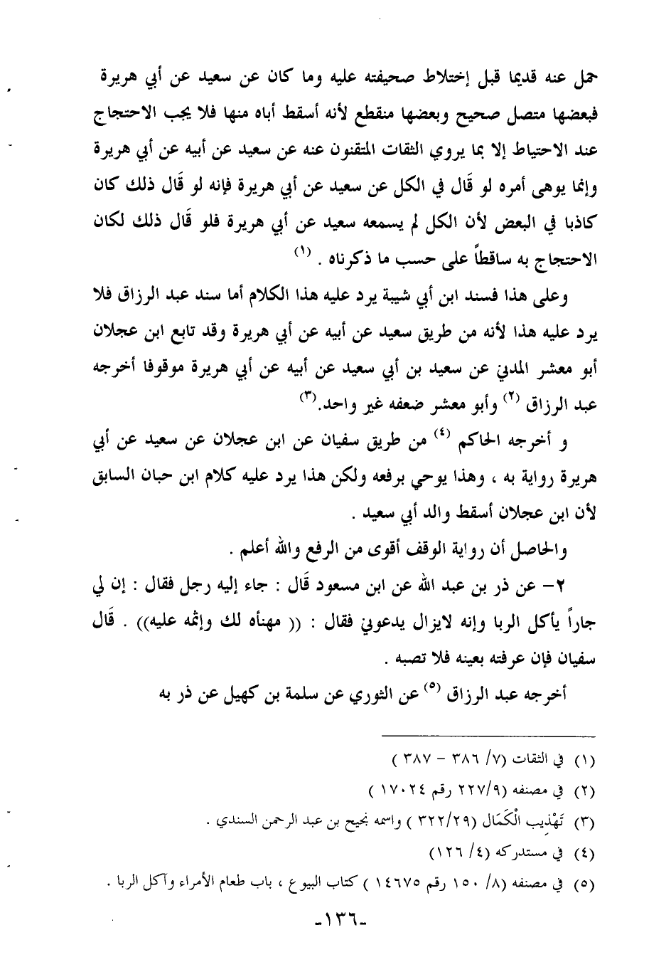 (¬5) في مصنفه (8/ 150 رقم 14675) كتاب البيوع، باب طعام الأمراء وآكل الربا.