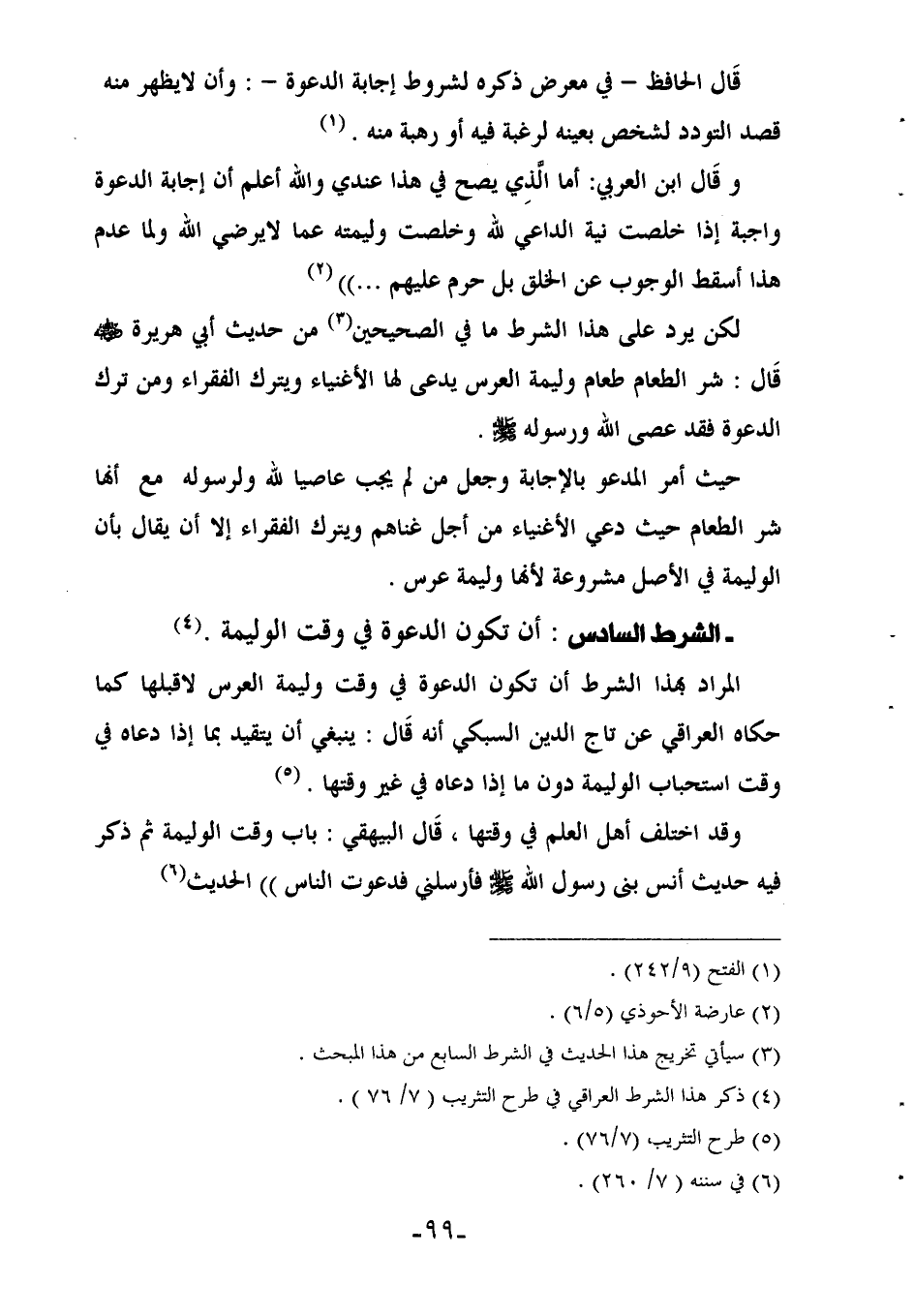 الشرط السادس: أن تكون الدعوة في وقت الوليمة (¬4).