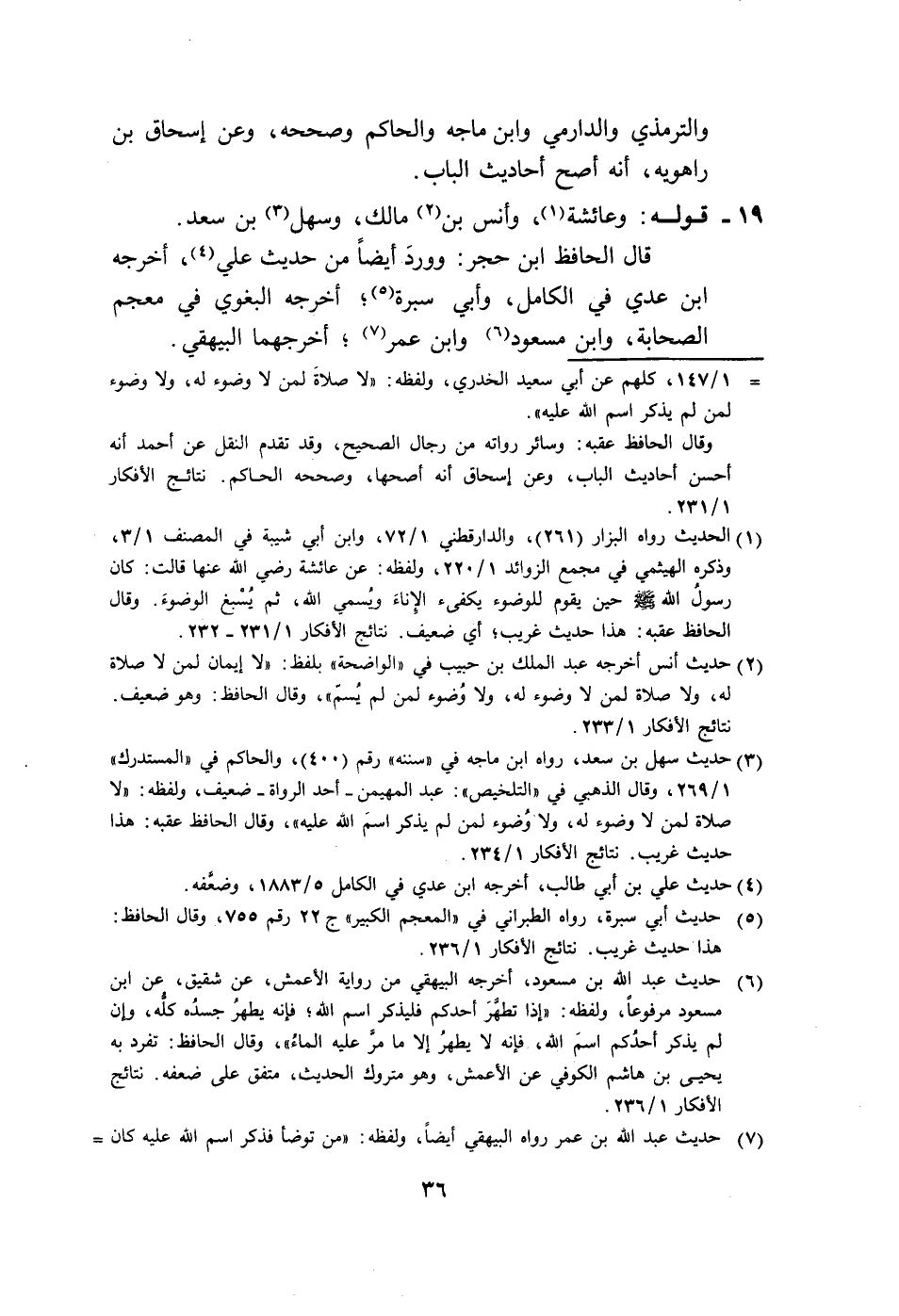 قال الحافظ ابن حجر: وورد أيضا من حديث علي أخرجه ابن عدي في الكامل وابي سبرة أخرجه البغوي في معجم الصحابة، وابن مسعود وابن عمر أخرجهما البيهقي.