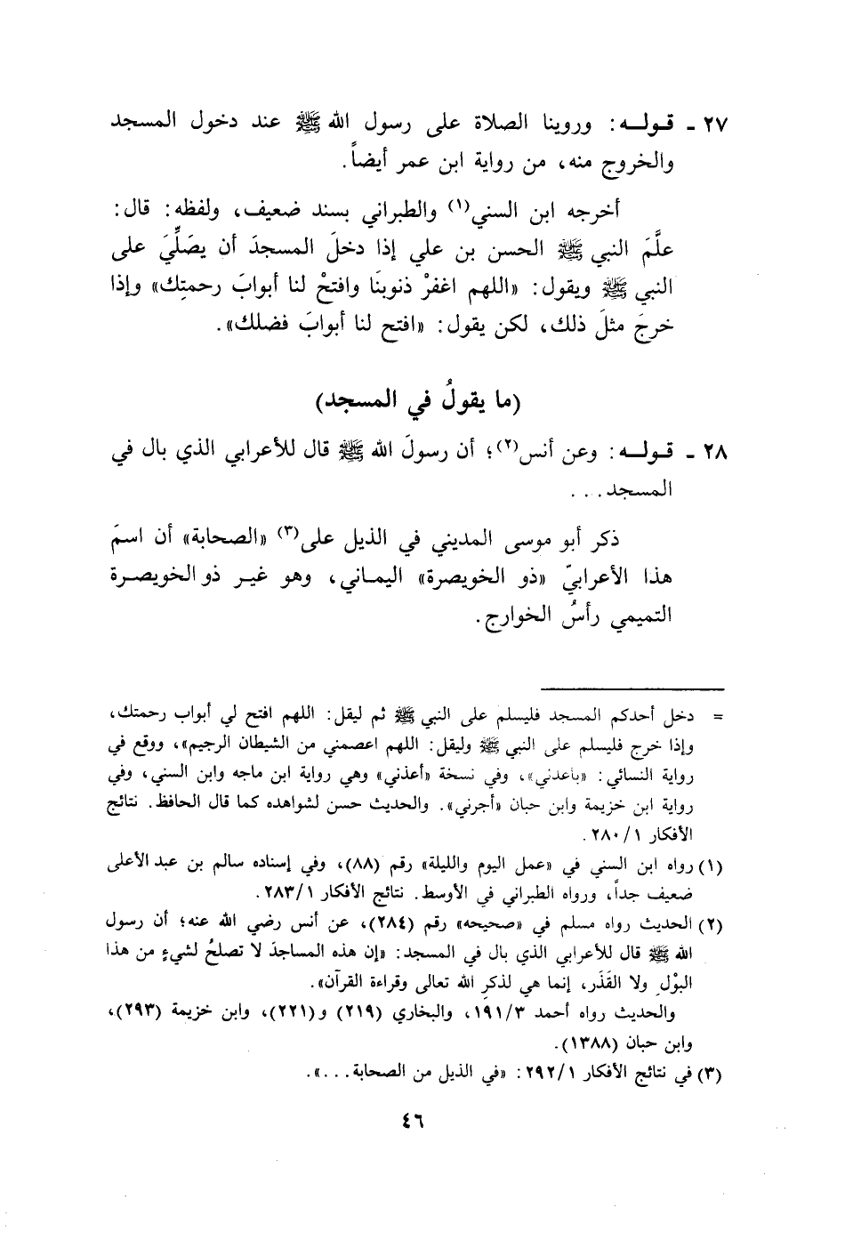 قوله: وعن أنس أن رسول الله صلى الله عليه وسلم قال للأعرابي الذي بال في المسجد.