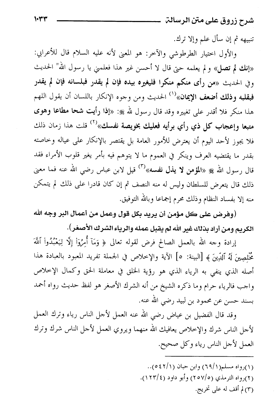 (وفرض على كل مؤمن أن يريد بكل قول وعمل من أعماله البر وجه الله الكريم ومن أراد بذلك غير الله لم يقبل عمله والرياء الشرك الأصغر)