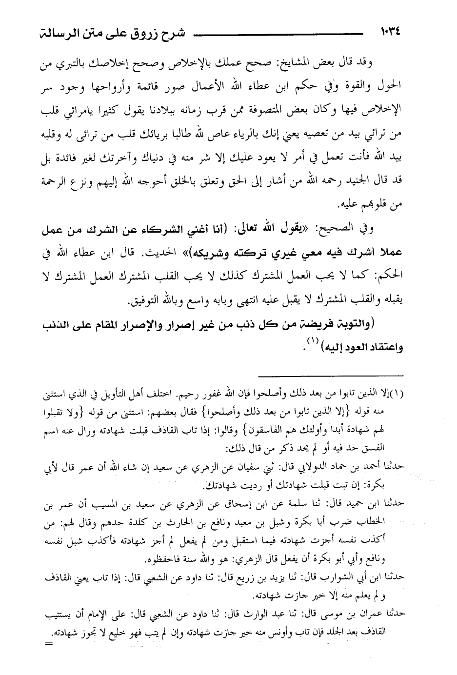 وفي الصحيح: " يقول الله تعالى: (أنا أغني الشركاء عن الشرك من عمل عملا أشرك فيه معي غيري تركته وشريكه) " الحديث. قال ابن عطاء الله في الحكم: كا لا يحب العمل المشترك كذلك لا يحب القلب المشترك العمل المشترك لا يقبله والقلب المشترك لا يقبل علي انتهى وبابه واسع وبالله التوفيق.