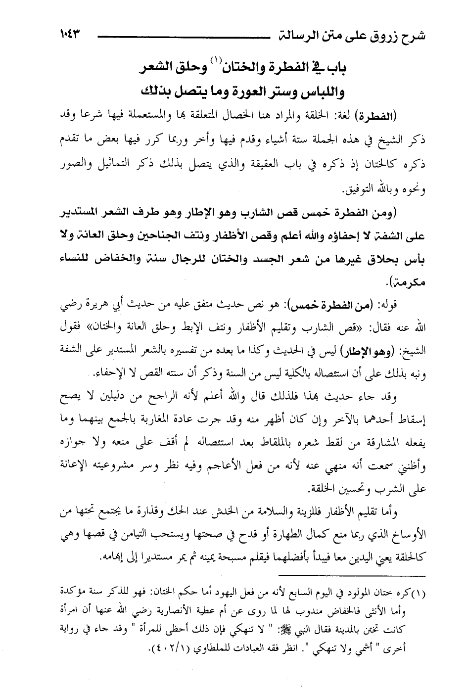 باب في الفطرة والختان وحلق الشعر واللباس وستر العورة وما يتصل بذلك