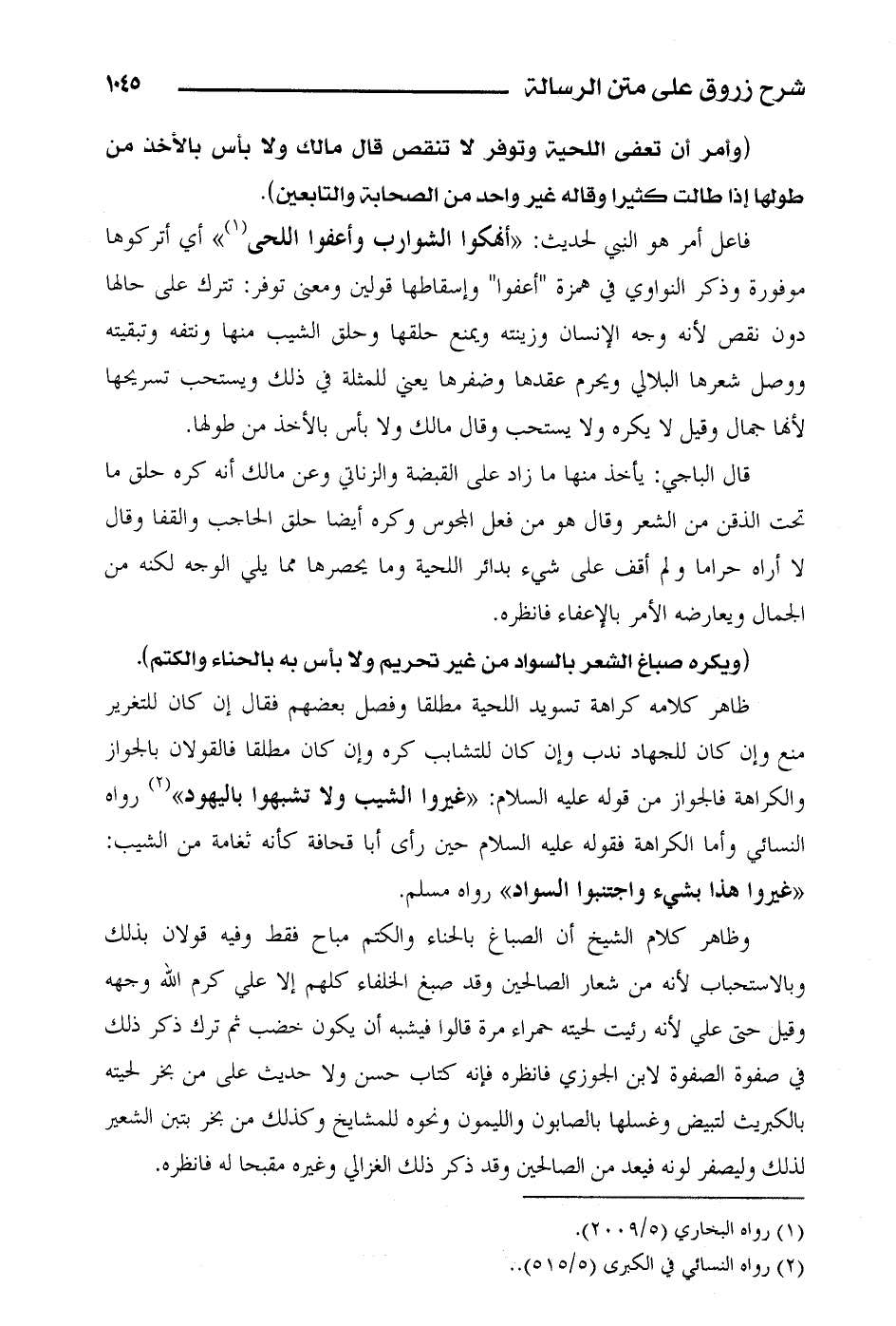 فاعل أمر هو الني لحديث: أنهكوا الشوارب وأعفوا اللحى" أي أتركوها موفورة وذكر النواوي في همزة " أعفوا" وإسقاطها قولي ومعنى توفر: تترك على حالها دون نقص لأنه وجه الإنسان وزينته ويمنع حلقها وحلق الشيب منها ونتفه وتبقيته ووصل شعرها البلالي ويحرم عقدها وضفرها يعني للمثلة في ذلك ويستحب تسريحها لأنها جمال وقيل لا يكره ولا يستحب وقال مالك ولا بأس بالأخذ من طولها.