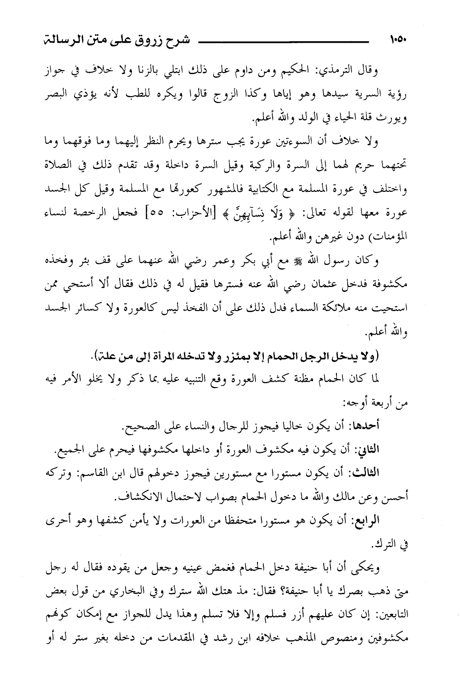 لما كان الحمام مظنة كشف العورة وقع التنبيه عليه بما ذكر ولا يخلوا الأمر فيه من أربعة أوجه: