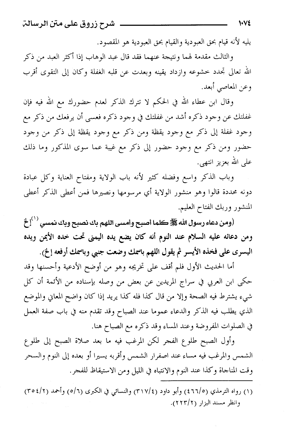 وقال ابن عطاء الله في الحكم لا تترك الذكر لعدم حضورك مع الله فيه فإن غفلتك عن وجود ذكره أشد من غفلتك في وجود ذكره فعسى أن يرفعك من ذكر مع وجود غفلة إلى ذكر مع وجود يقظة ومن ذكر مع وجود يقظة إلى ذكر من وجود حضور ومن ذكر مع وجود حضور إلى ذكر مع غيبة عما سوى المذكور وما ذلك على الله بعزيز انتهى.