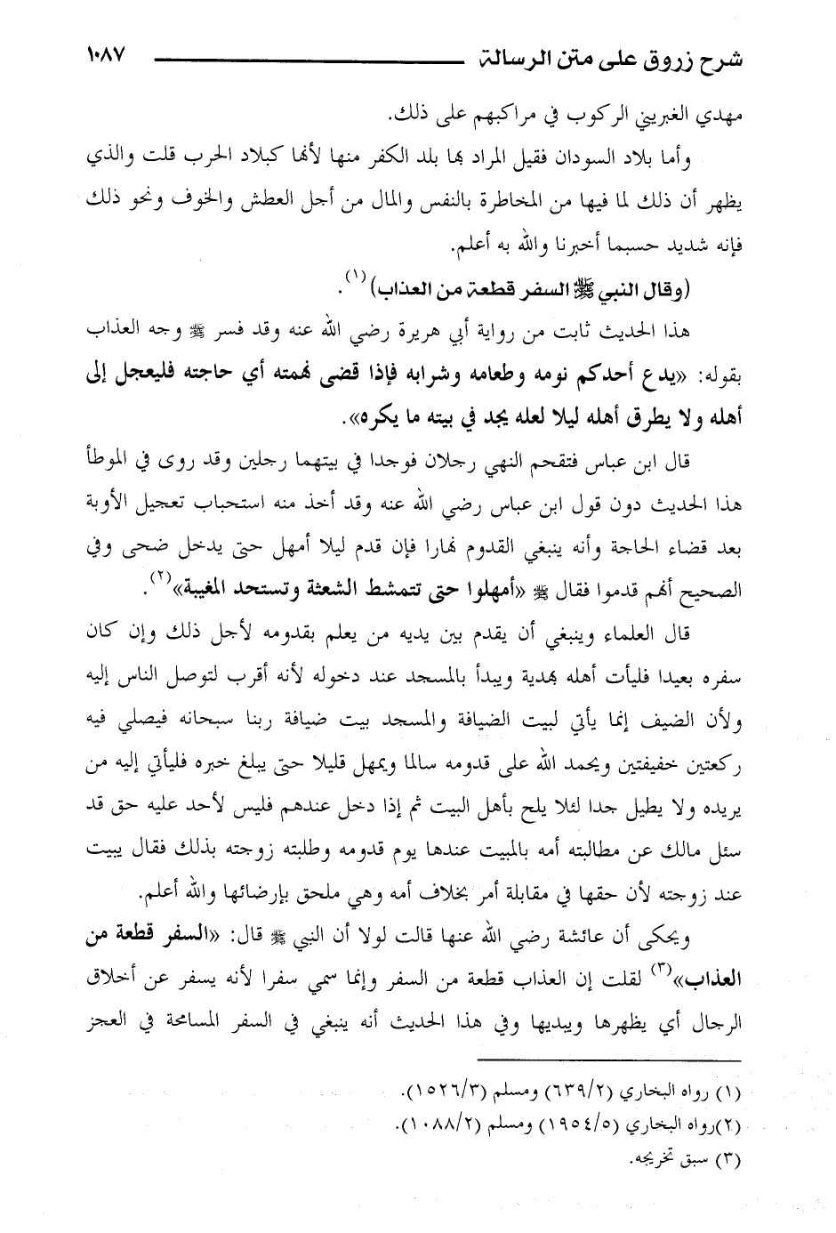 (وقال النبي صلى الله عليه وسلم السفر قطعة من العذاب).