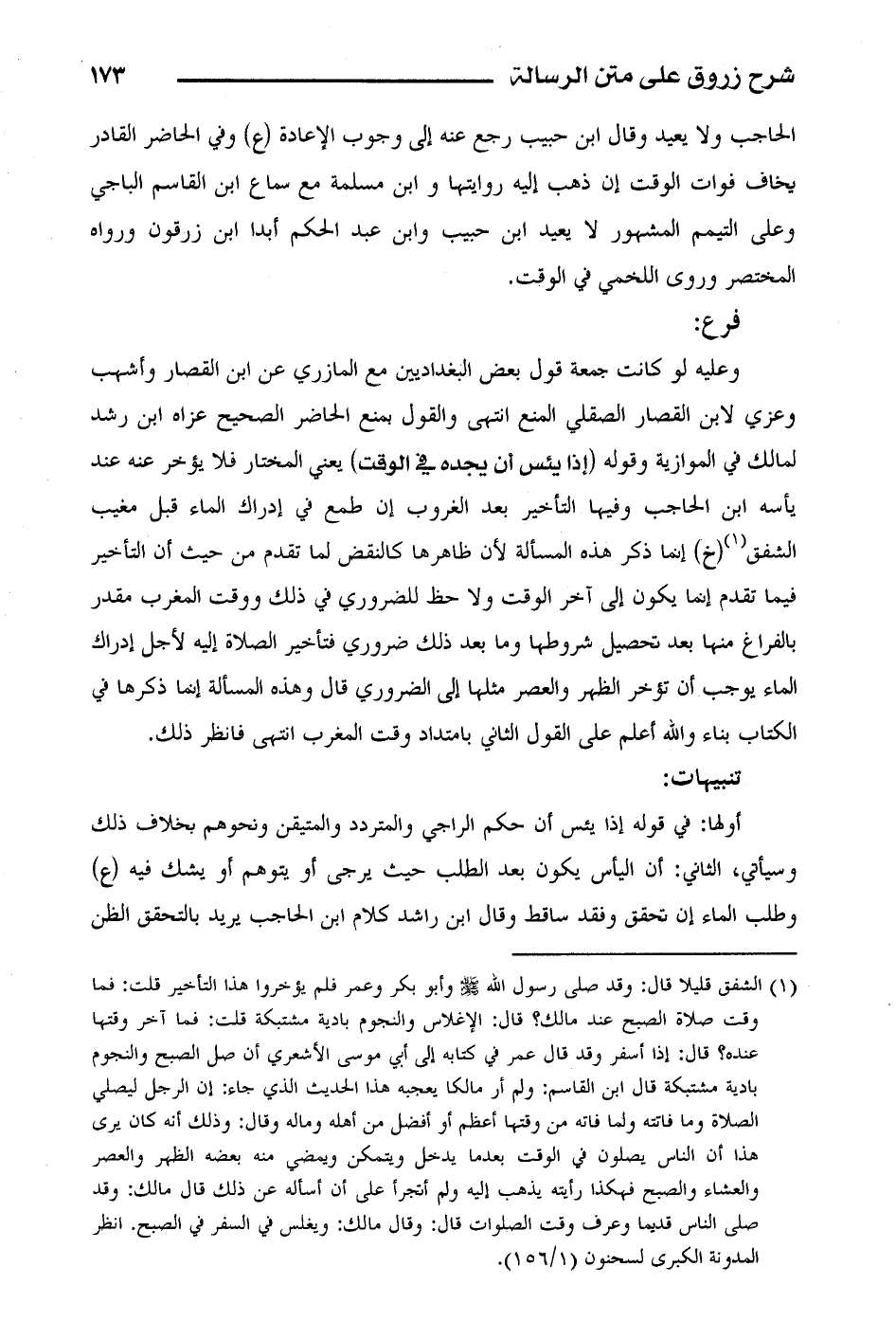 وعليه لو كانت جمعة قول بعض البغداديين مع المازري عن ابن القصار وأشهب وعزي لابن القصار الصقيل المنع انتهى والقول بمنع الحاضر الصحيح عزاه ابن رشد لمالك في الموازية وقوله (إذا يئس أن يجده في الوقت) يعني المختار فلا يؤخر عنه عند يأسه ابن الحاجب وفيها التأخير بعد الغروب إن طمع في إدراك الماء قبل مغيب الشفق (خ) إنما ذكر هذه المسألة لأن ظاهرها كالنقض لما تقدم من حيث أن التأخير فيما تقدم إنما يكون إلى آخر الوقت ولاحظ للضروري في ذلك ووقت المغرب مقدر بالفراغ منها يعد تحصيل شروطها وما بعد ذلك ضروري فتأخير الصلاة إليه لأجل إدراك الماء يوجب أن تؤخر الظهر والعصر مثلها إلى الضروري قال وهذه المسألة إنما ذكرها في الكتاب بناء والله أعلم على القول الثاني بامتداد وقت المغرب انتهى فانظر ذلك.