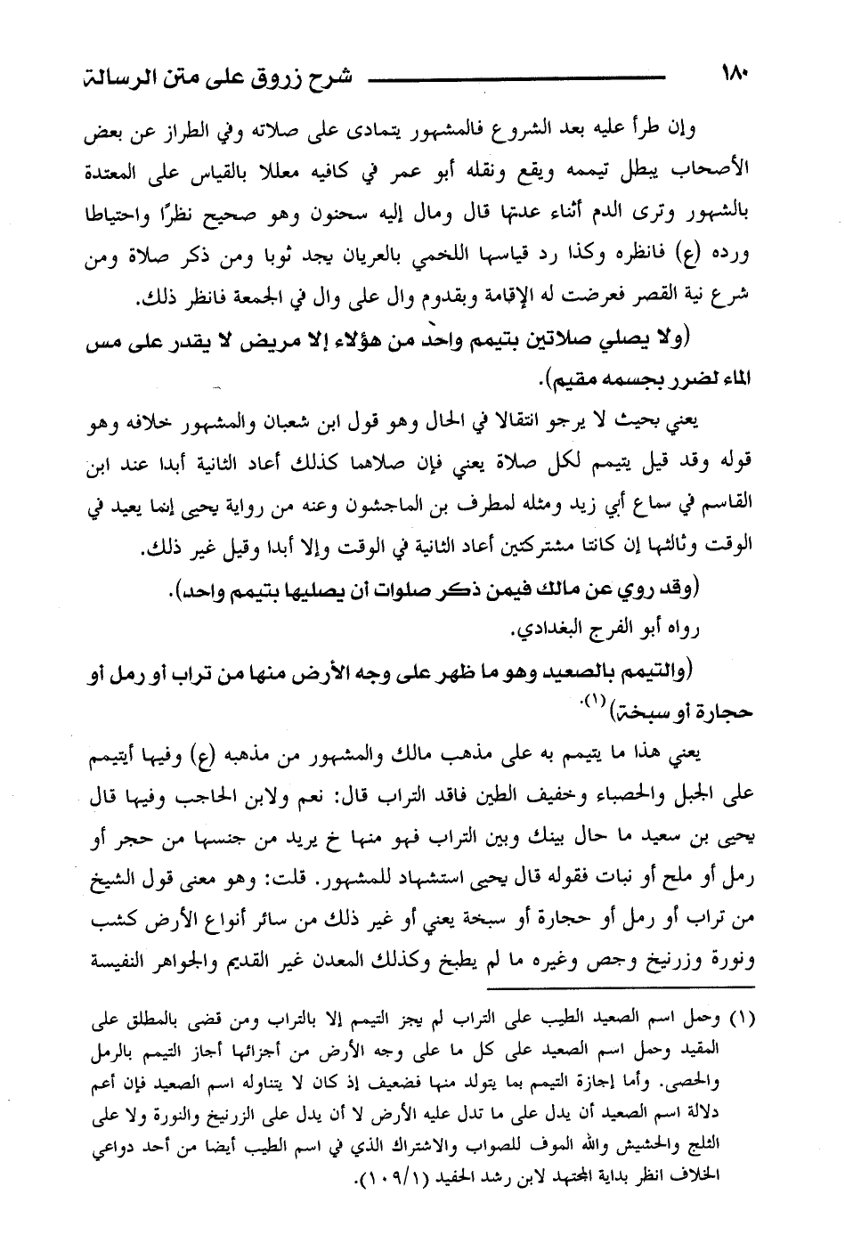 يعني هذا ما يتيمم به على مذهب مالك والمشهور من مذهبه (ع) وفيها أيتيمم على الجبل والحصباء وخفيف الطين فاقد التراب قال: نعم ولابن الحاجب وفيها قال يحيى بن سعيد ما حال بينك وبين التراب فهو منها (خ) يريد من جنسها من حجر أو رمل أو ملح أو نبات فقوله قال يحيى استشهاد للمشهور. قلت: وهو معنى قول الشيخ من تراب أو رمل أو حجارة أو سبخة يعني أو غير ذلك من سائر أنواع الأرض كشب ونورة وزرنيخ وغيره ما لم يطبخ وكذلك المعدن غير القديم والجواهر النفيسة