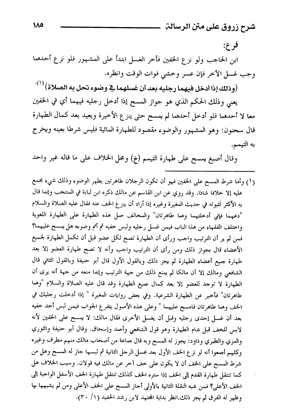 يعني وذلك الحكم الذي هو جواز المسح إذا أدخل رجليه فيهما أي في الخفين معا لا أحدهما فلو أدخل أحدهما لم يمسح حتى ينزع الأخيرة ويعيد بعد كمال الطهارة قال سحنون: وهو المشهور والوضوء مقصود للطهارة المائية فليس شرطا بعينه ويخرج به التيمم.