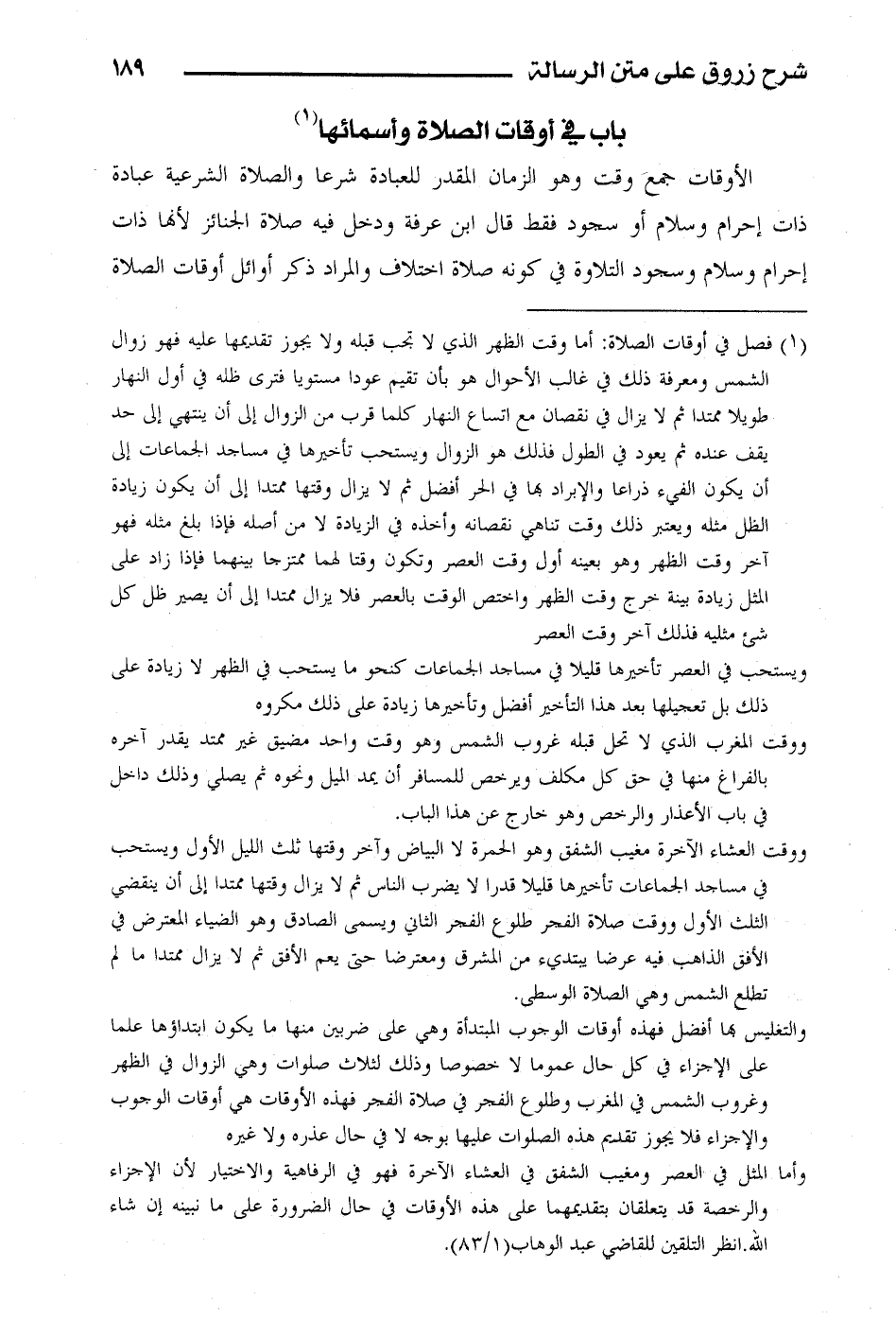 كتاب شرح زروق على متن الرسالة (اسم الجزء: 1)