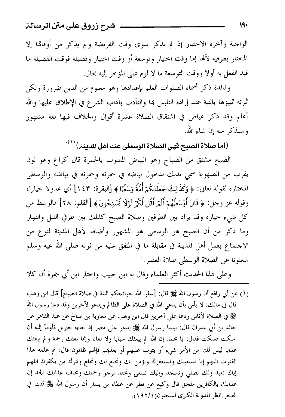 (أما صلاة الصبح فهي الصلاة الوسطى عند أهل المدينة).