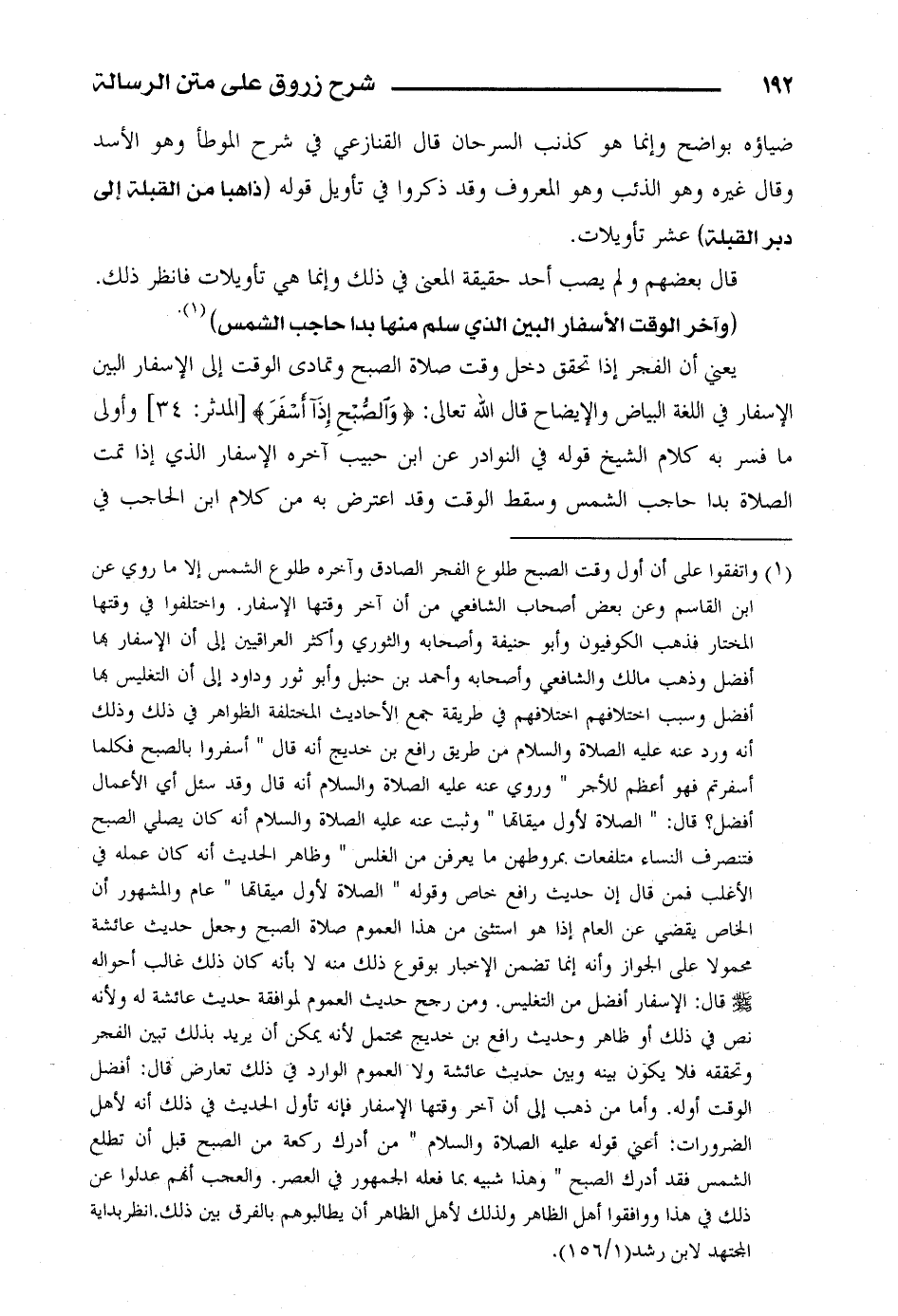 (وآخر الوقت الأسفار البين الذي سلم منها بدا حاجب الشمس).