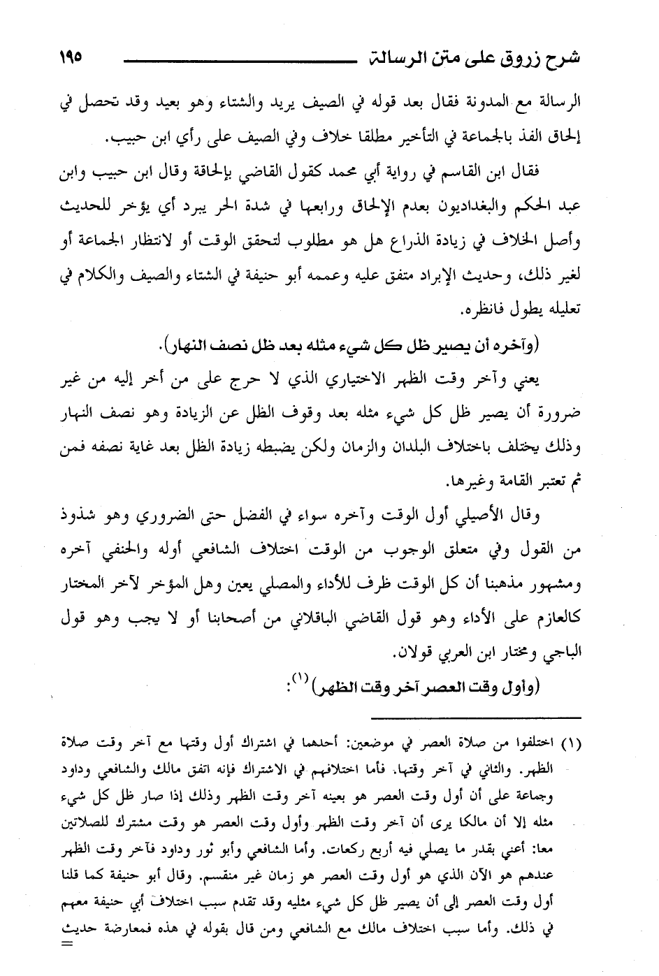 الرسالة مع المدونة فقال بعد قوله في الصيف يريد والشتاء وهو بعيد وقد تحصل في إلحاق الفذ بالجماعة في التأخير مطلقاً خلاف وفي الصيف على رأي ابن حبيب.