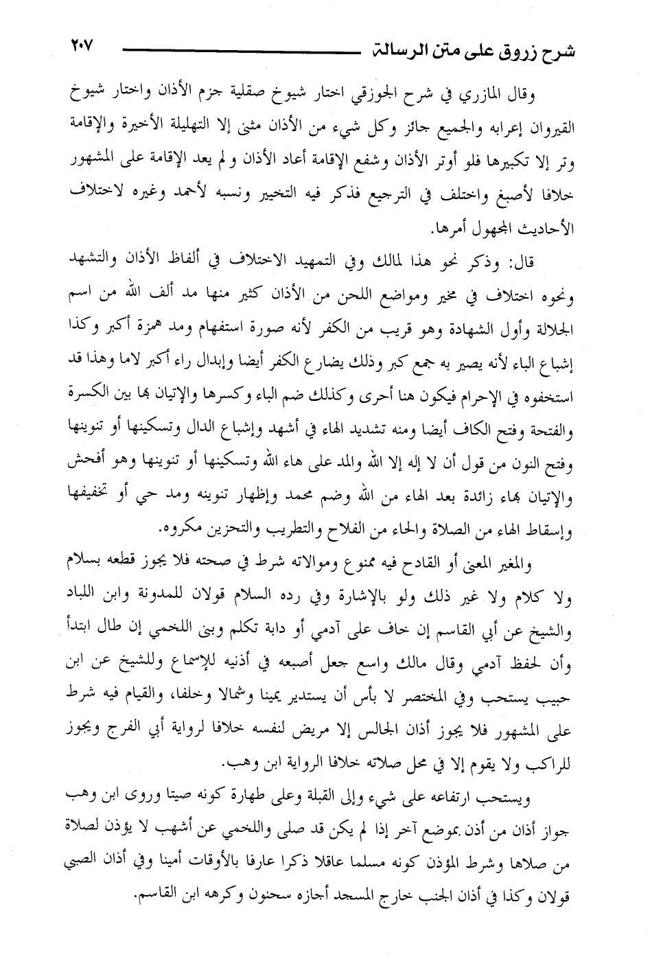 وقال المازري في شرح الجوزقي اختار شيوخ صقلية جزم الأذان واختار شيوخ القيروان إعرابه والجميع جائز وكل شيء من الأذان مثنى إلا التهليلة الأخيرة والإقامة وتر إلا بتكبيرها فلو أوتر الأذان وشفع الإقامة أعاد الأذان ولم يعد الإقامة على المشهور خلافا لأصبغ واختلف في الترجيع فذكر فيه التخيير ونسبه لأحمد وغيره لاختلاف الأحاديث المجهول أمرها.