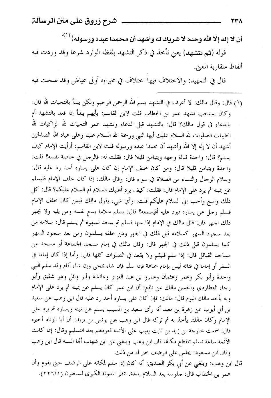 كتاب شرح زروق على متن الرسالة (اسم الجزء: 1)