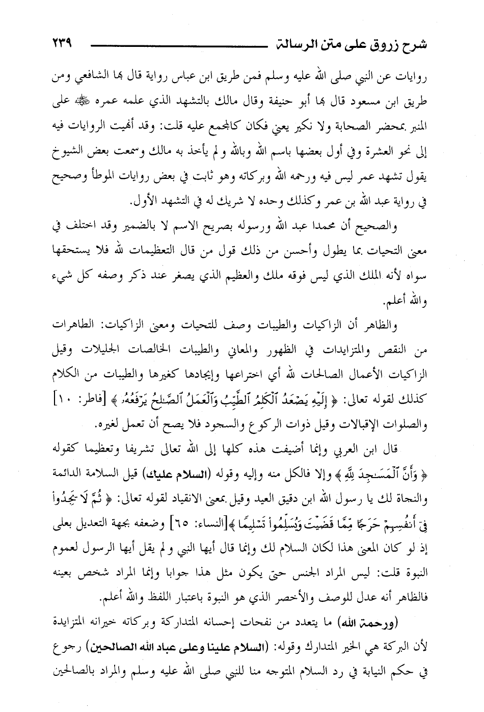 (ورحمة الله) ما يتعدد من نفحات إحسانه المتداركة وبركاته خيراته المتزايدة لأن البركة هي الخير المتدارك وقوله: (السلام علينا وعلى عباد الله الصالحين) رجوع في حكم النيابة في رد السلام المتوجه منا للنبي صلى الله عليه وسلم والمراد بالصالحين