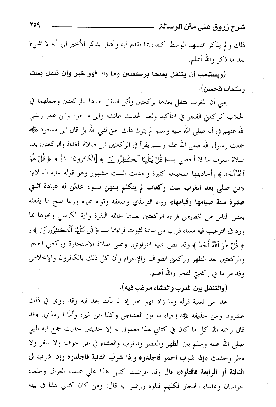 هذا من نسبة قوله وما زاد فهو خير إذ لم يأت بحد فيه وقد روى في ذلك عشرون وعن حذيفة رضي الله عنه إحياء ما بين العشاءين وكذا عن غيره وأما الترمذي. وقد قال رحمه الله كل ما كان في كتابي هذا معمول به إلا حديثين حديث جمع فيه النبي صلى الله عليه وسلم بين الظهر والعصر والمغرب والعشاء في غير خوف ولا سفر ولا مطر وحديث «إذا شرب الخمر فاجلدوه وإذا شرب الثانية فاجلدوه وإذا شرب في الثالثة أو الرابعة فاقتلوه» قال وقد عرضت كتابي هذا على علماء العراق وعلماء خراسان وعلماء الحجاز فكلهم قبلوه ورضوا به قال: ومن كان كتابي هذا في بيته