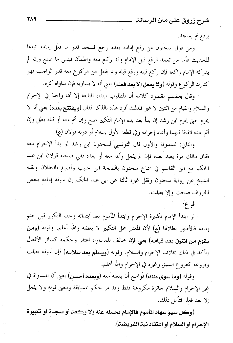 وقوله (ومن يقوم من اثنين بعد قيامه) يعني فإن خالف للمساواة اغتفر وحكمه كسائر الأفعال يتأكد في ذلك بخلاف الإحرام والسلام. وقوله (ويسلم بعد سلامه) فإن سبقه بطلت وفروعه كفروع السبق وغيره في الإحرام والله أعلم.