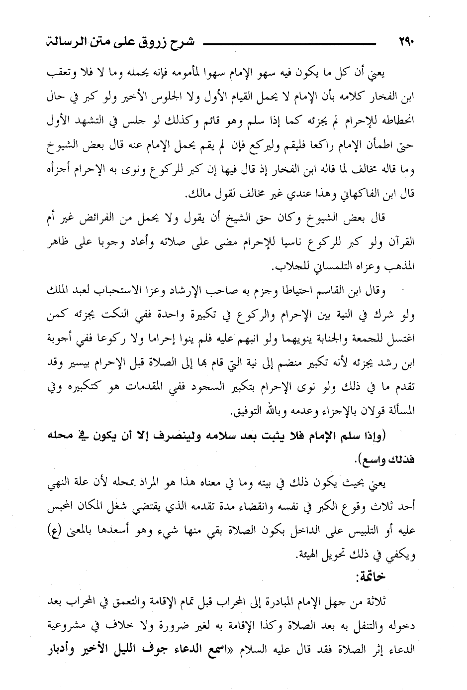 ثلاثة من جهل الإمام المبادرة إلى المحراب قبل تمام الإقامة والتعمق في المحراب بعد دخوله والتنفل به بعد الصلاة وكذا الإقامة به لغير ضرورة ولا خلاف في مشروعية الدعاء إثر الصلاة فقد قال عليه السلام: «اسمع الدعاء جوف الليل الأخير وأدبار