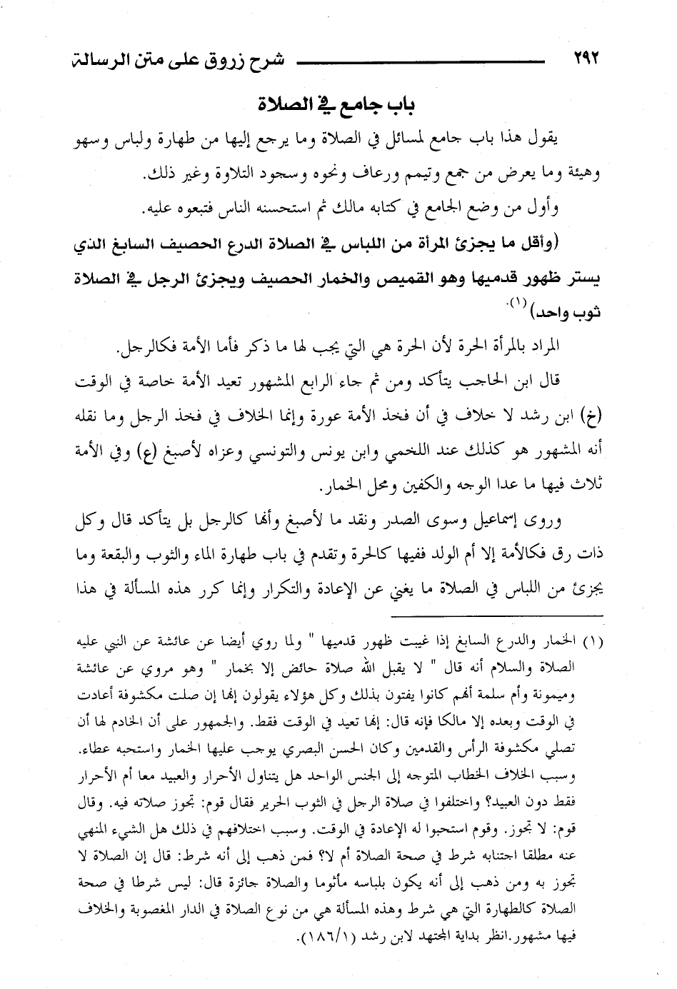 وروى إسماعيل وسوى الصدر ونقد ما لأصبغ وأنها كالرجل بل يتأكد قال وكل ذات رق فكالأمة إلا أم الولد ففيها كالحرة وتقدم في باب طهارة الماء والثوب والبقعة وما يجزئ من اللباس في الصلاة ما يغني عن الإعادة والتكرار وإنما كرر هذه المسألة في هذا