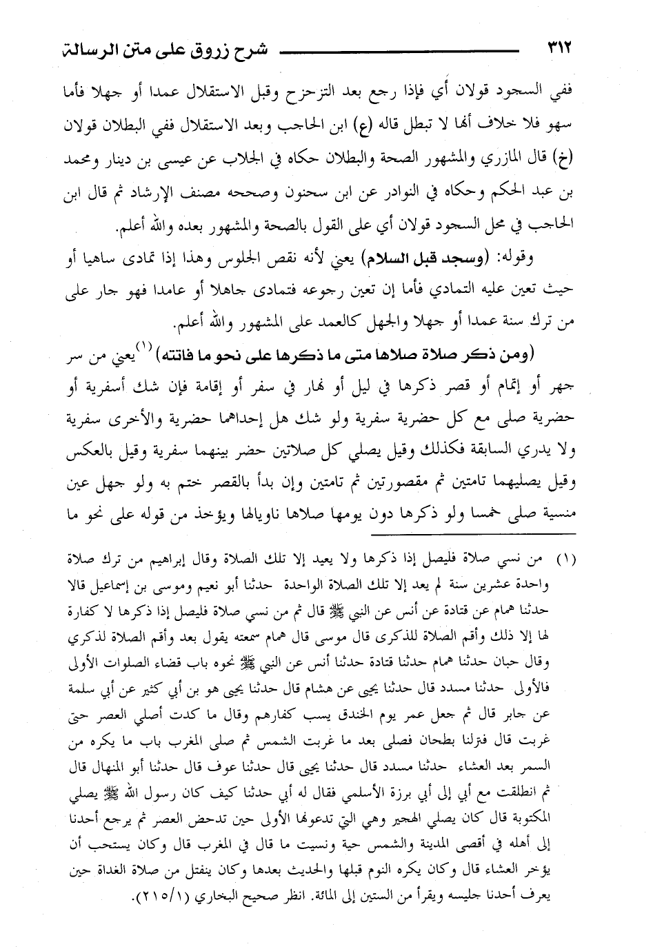 (ومن ذكر صلاة صلاها متى ما ذكرها على نحو ما فاتته) يعني من سر جهر أو إتمام أو قصر ذكرها في ليل أو نهار في سفر أو إقامة فإن شك أسفرية أو حضرية صلى مع كل حضرية سفرية ولو شك هل إحداهما حضرية والأخرى سفرية ولا يدري السابقة فكذلك وقيل يصلي كل صلاتين حضر بينهما سفرية وقبل بالعكس وقيل يصليهما تامتين ثم مقصورتين ثم تامتين وإن بدأ بالقصر ختم به ولو جهل عين منسية صلى خمسا ولو ذكرها دون يومها صلاها ناويالها ويؤخذ من قوله على نحو ما
