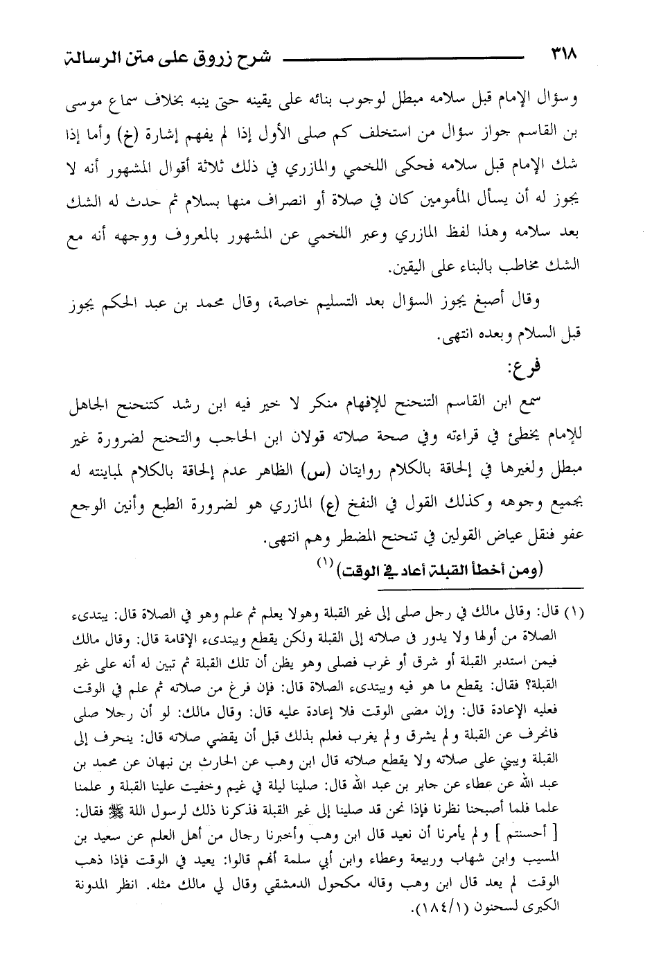 وسؤال الإمام قبل سلامه مبطل لوجوب بنائه على يقينه حتى ينبه بخلاف سماع موسى بن القاسم جواز سؤال من استخلف كم صلى الأول إذا لم يفهم إشارة (خ) وأما إذا شك الإمام قبل سلامه فحكى اللخمي والمازري في ذلك ثلاثة أقوال المشهور أنه لا يجوز له أن يسأل المأمومين كان في صلاة أو انصراف منها بسلام ثم حدث له الشك بعد سلامه وهذا لفظ المازري وعبر اللخمي عن المشهور بالمعروف ووجهه أنه مع الشك مخاطب بالبناء على اليقين.